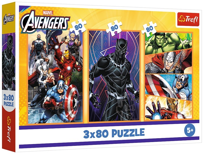 Puzzle 3x80-el. Dni pełne akcji / Disney Marvel Avengers, Trefl