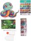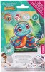 Zestaw zawiera: drewnianą płytę w kształcie postaci z nadrukowanym obrazkiem, drewniany stojak, piórko do aplikacji kamyczków, miskę, wosk do przyklejania oraz zestaw kolorowych kamyczków.