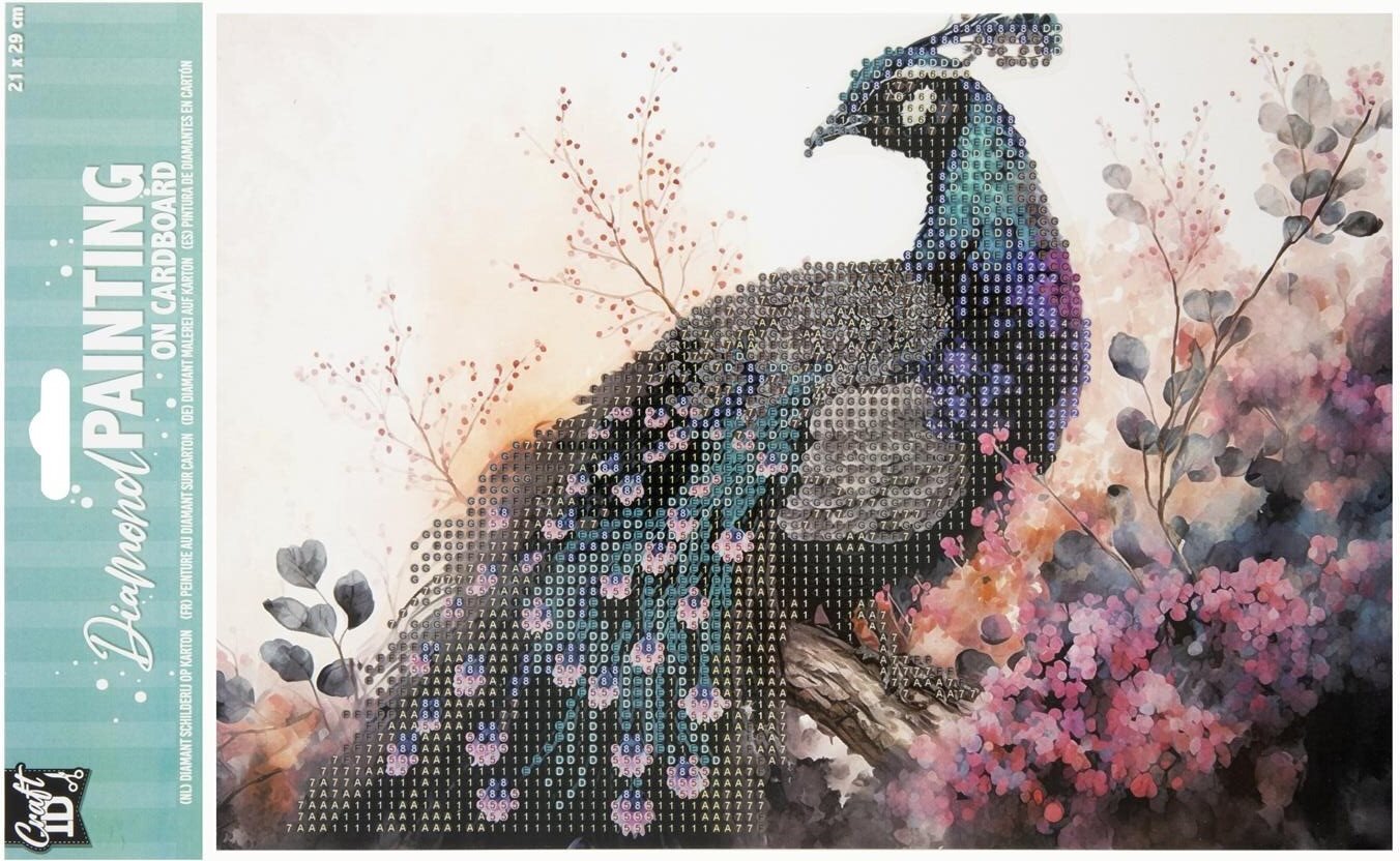 CRAFT ID Diamantové malování na desce Páv 29x21cm