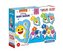 4 kształtowe układanki o rosnącym poziomie trudności. Wykonane z grubego i wytrzymałego kartonu. Tylna strona każdego elementu jest zacieniona, a także jednokolorowa, ułatwiając układanie każdego z obrazków. przeczytaj całość
