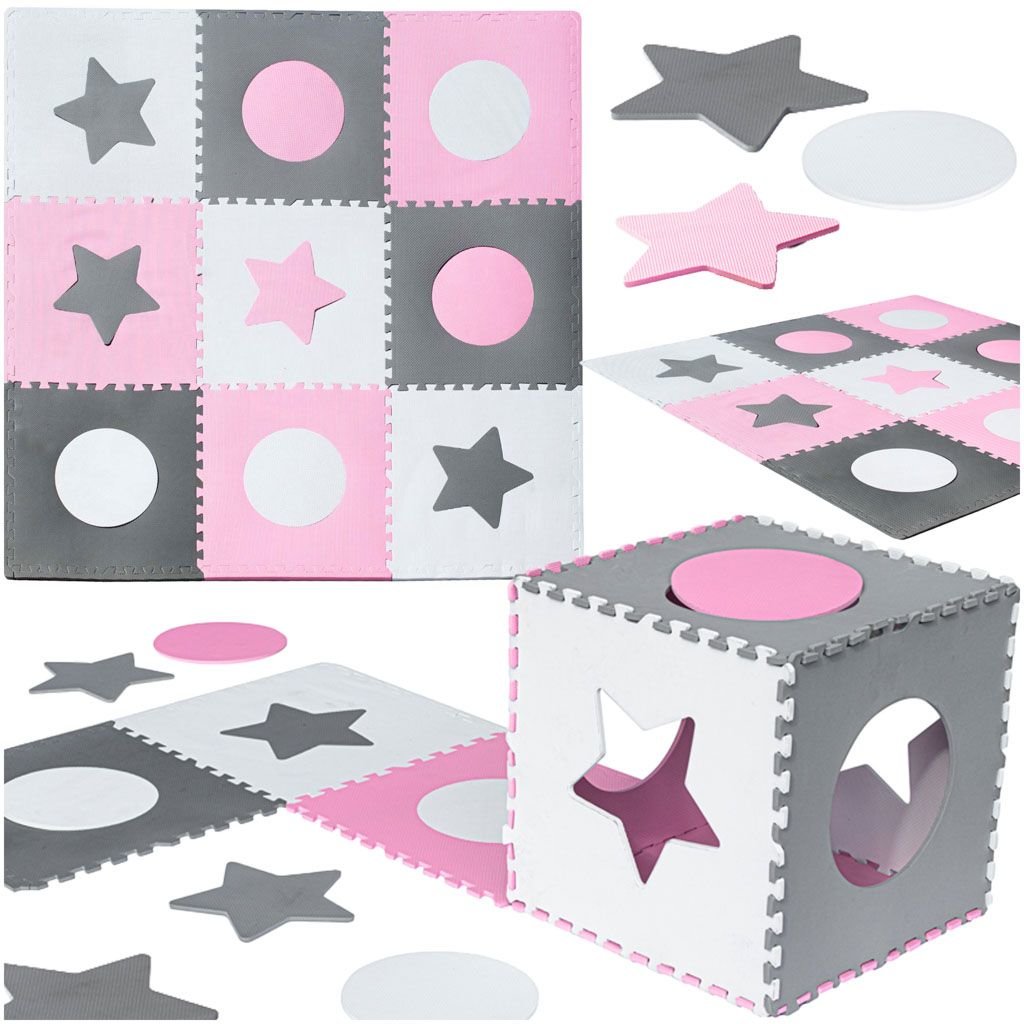 Pěnová podložka na puzzle pro děti 180x180cm 9 dílků šedo a růžová