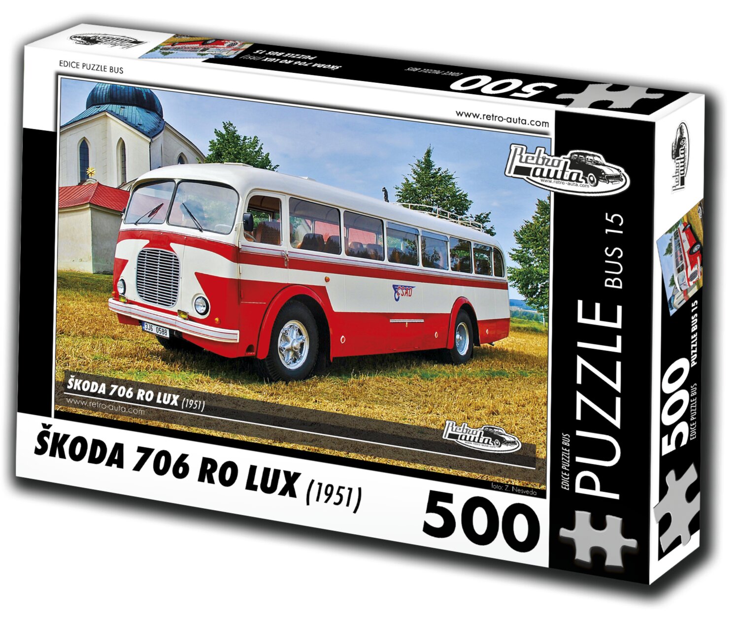 RETRO-AUTA Puzzle BUS č.15 Škoda 706 RO LUX (1951) 500 dílků