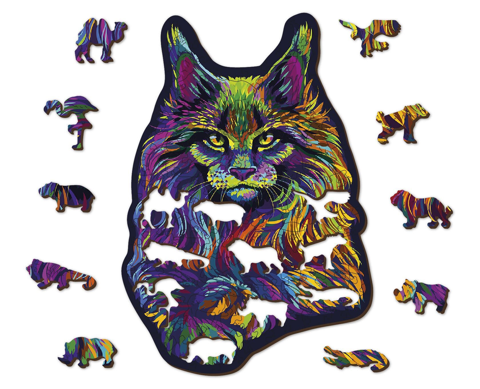 WOODEN CITY Dřevěné puzzle Duhová divoká kočka 140 dílků EKO