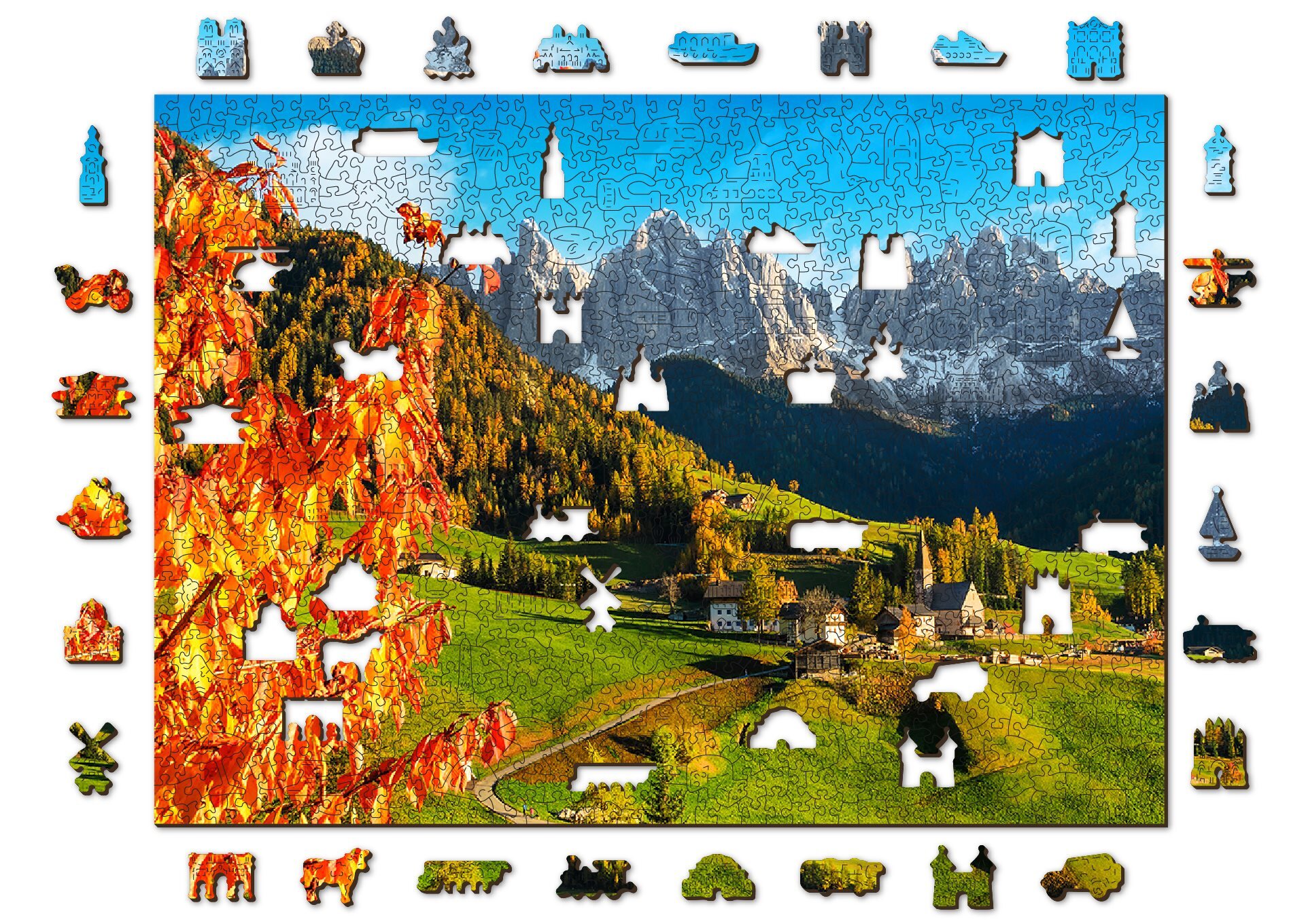 WOODEN CITY Dřevěné puzzle Santa Maddalena, Dolomity, Itálie 2v1, 1010 dílků EKO