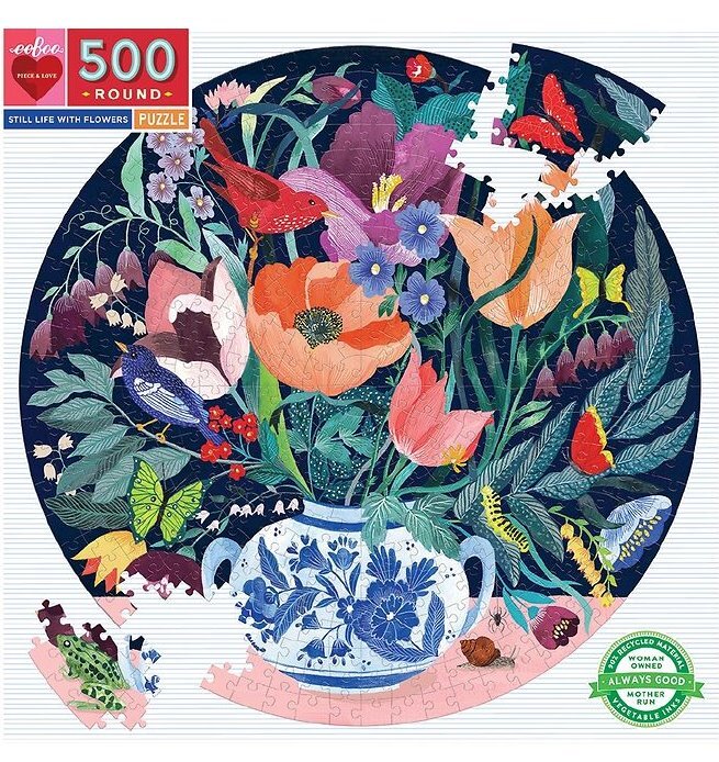 EEBOO Kulaté puzzle Zátiší s květinami 500 dílků