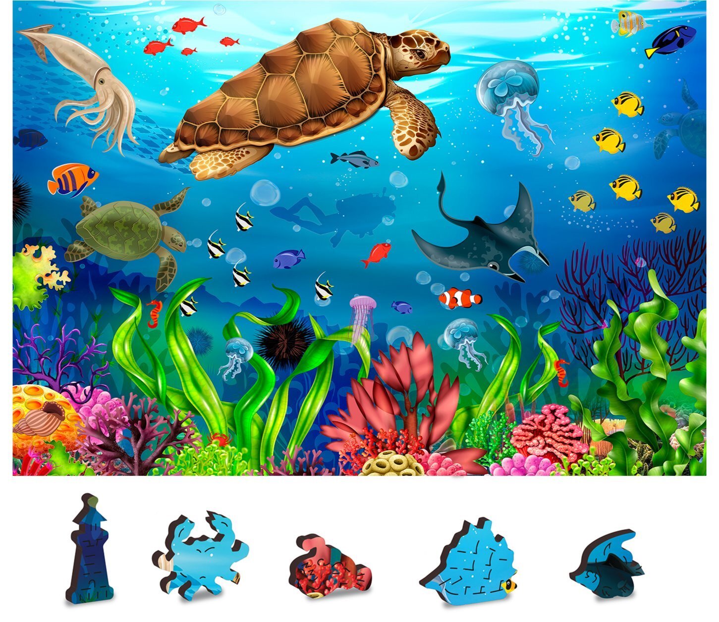 WOODEN CITY Dřevěné puzzle Potápěčský ráj 2v1, 100 dílků EKO