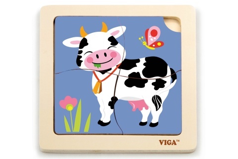 Drewniane puzzle z motywem krowy to doskonały wybór dla dzieci od 18 miesięcy. Dzięki czterem solidnym elementom dzieci w przyjazny sposób opanują pierwsze umiejętności logiczne oraz sprawność manualną. Obraz o wymiarach około 12 x 12 cm jest na tyle duży, aby dzieci mogły go łatwo chwycić i ułożyć, a jednocześnie rozwija ich uwagę i cierpliwość.