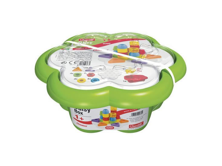Mozaiková stavebnice rozvíjející jemnou motoriku, tvořivost a schopnost rozeznávat barvy a tvary. Děti vkládají jednotlivé díly do podložky a vytvářejí tak své první mozaikové obrazce nebo stavějí na podložce různé výškové stavby. Po skončení hry lze celou soupravu uložit do úhledné schránky ve tvaru květiny. Podložka je z měkkého ohebného plastu špičkové kvality a všechny díly jsou omyvatelné.