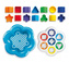Zestaw rozwijający motorykę małą, kreatywność oraz umiejętność rozróżniania kolorów i kształtów. Składa się z 14 wielobarwnych elementów w siedmiu różnych kształtach, które dzieci uczą się rozpoznawać i wkładać w odpowiedni otwór w pokrywie. Po zakończeniu zabawy cały zestaw można schować do estetycznego pudełka w kształcie kwiatu. Wszystkie części zestawu są zmywalne.