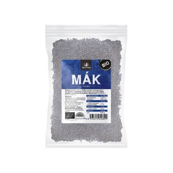 Mák setý BIO je jednoletá rostlina. Její pěstovaní má v České republice dlouholetou tradici, ale v některých zemích je její pěstování zakázáno. Lze využít při sladkém i slaném pečení nebo k přípravě pokrmů, jako např. nudle s mákem.Modrý mák z certifikovaného ekologického zemědělství przeczytaj całość