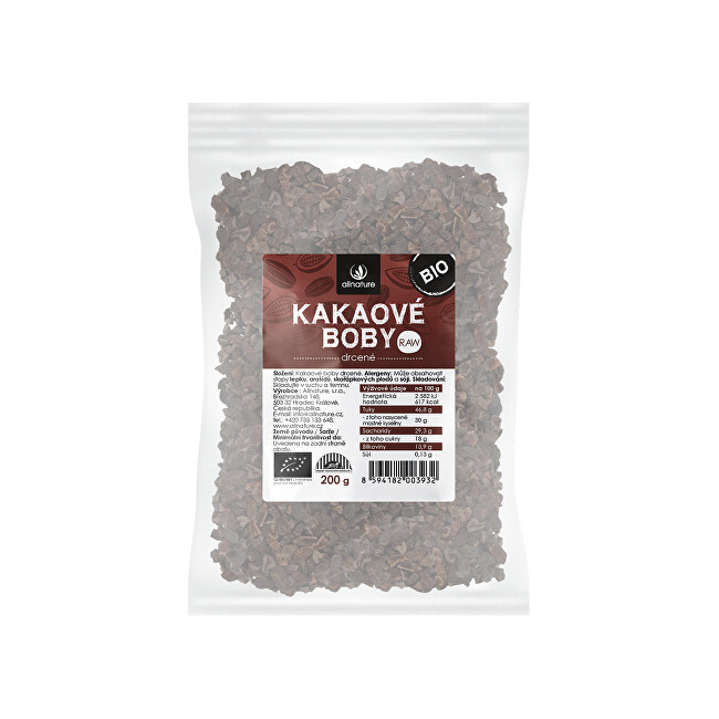 Allnature RAW BIO Drcené kakaové boby 200 g