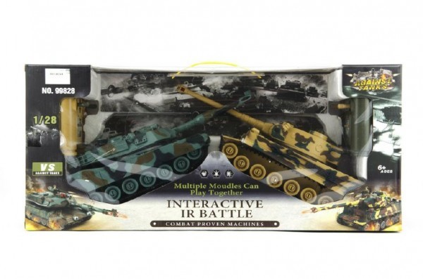 Tank RC 2ks 36cm tanková bitva+dobíjecí pack 27MHZ a 40MHz se zvukem se světlem v krabici 58x26x15cm
