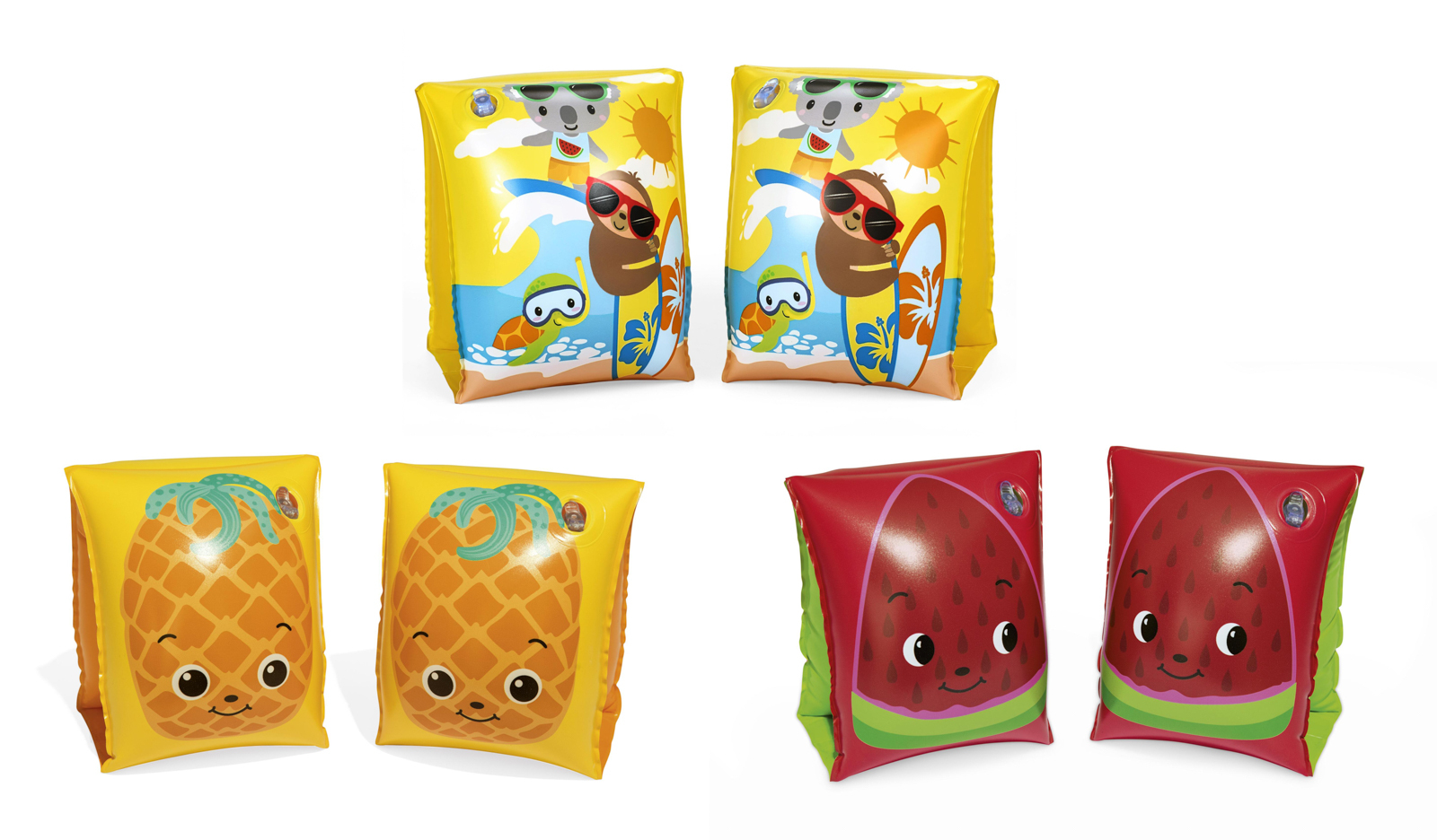 Nadmuchiwane rękawki są niezbędnym elementem dla początkujących pływaków! Dzieci mogą bezpiecznie korzystać z wodnych zabaw dzięki rękawkom w motywach rybek, owoców, ananasa lub truskawki. Idealne dla dzieci w wieku 3-6 lat. Rozmiar rękawków: 23 x 15 cm Nadają się dla dzieci od 3 lat przeczytaj całość