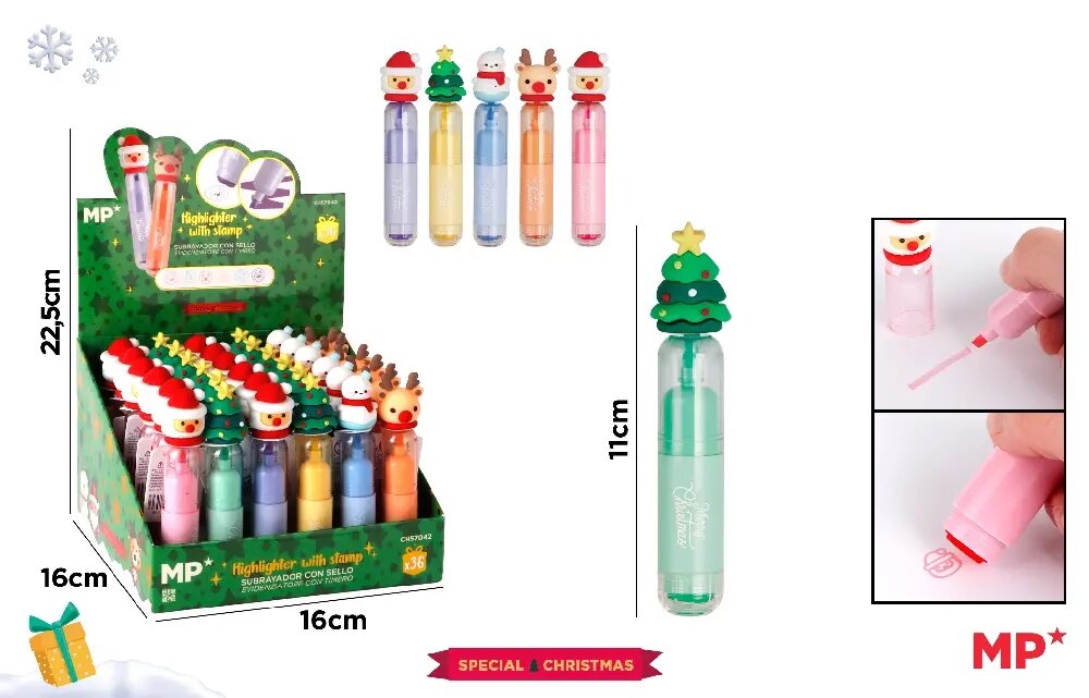 Zakreślacz ze stempelkiem - świąteczny MIKOŁAJ / CHOINKA / RENIFER / BAŁWANE