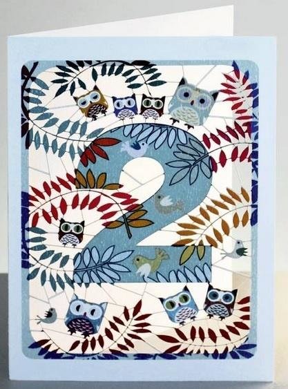 Karnet PM792 wycinany + koperta Urodziny 2 sowy
