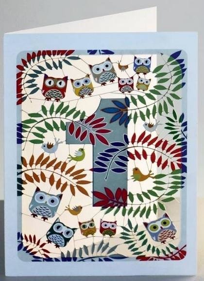 Karnet PM791 wycinany + koperta Urodziny 1 sowy