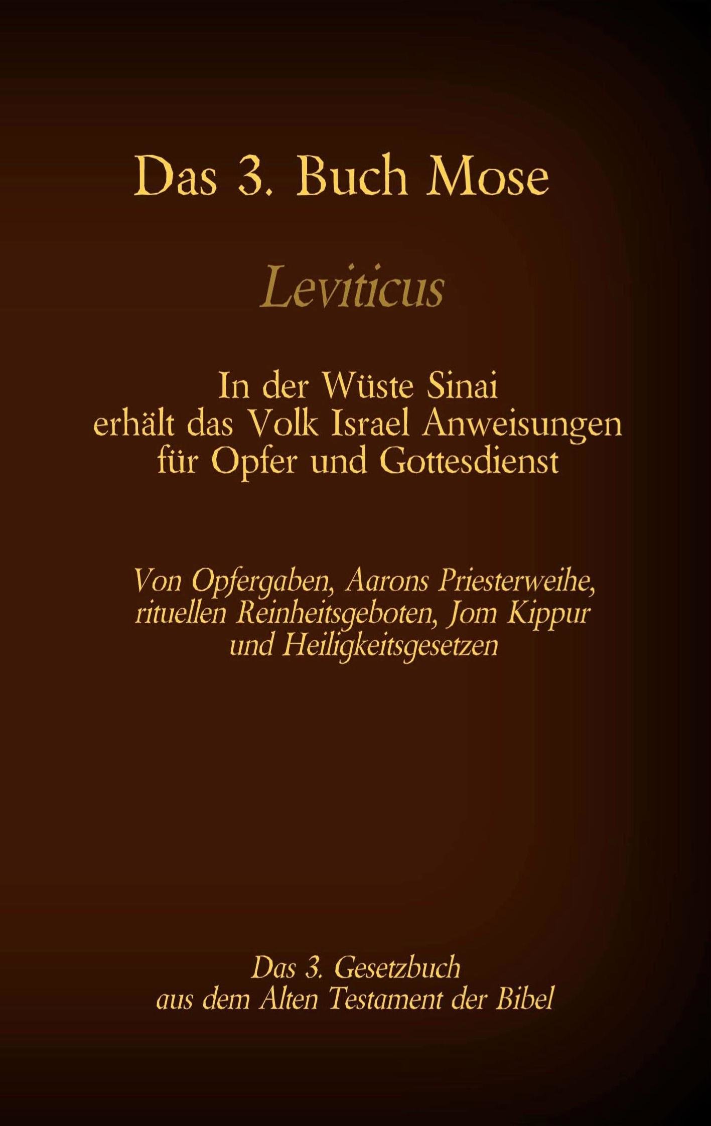Das 3. Buch Mose, Leviticus, das 3. Gesetzbuch aus der Bibel - In der Wüste Sinai erhält das Volk Israel Anweisungen für Opfer u (niemiecki)