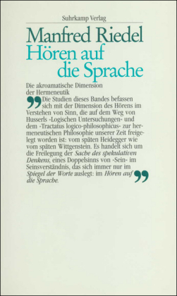 ... Diese zwischen Sprechen und Hören spielende Maßgabe des Verstehens nennen wir die akroamatische Dimension (von gr. akroasthai, hören lassen, vernehmen, auf etwas hören im Sinne von achten). Die Öffnung der akroamatischen Dimension durch die hermeneutische Philosophie unseres Jahrhunderts gibt...