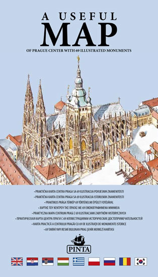 A USEFUL MAP - Praktická mapa centra Prahy s 69 ilustracemi historických památek (modrá)
