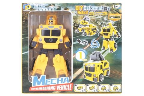 Składany robot skręcany o wymiarach ok. 15,5 x 11 x 5 cm. Robota można zmontować w formę ciężarówki z koparką. Opakowanie zawiera dodatkowe akcesoria oraz śrubokręt do montażu. Wymiary opakowania ok. 24 x 21,5 x 7,5 cm. Wiek 3+ przeczytaj całość