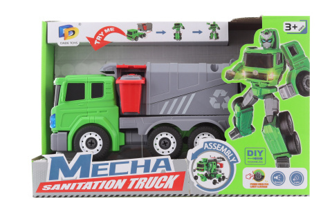 Duża śmieciarka, którą można przekształcić w robota. Materiał: plastik. Pojazd wydaje efekty dźwiękowe i świetlne. Zasilanie: 3 baterie AG13, które są dołączone do zestawu. Pakowane w pudełku. Wymiary opakowania ok. 32x20x13 cm. Wiek 3+ przeczytaj całość