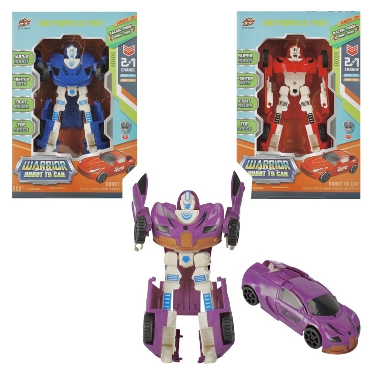Robot lze několika pohyby přeměnit na auto. Dostupný je ve třech barvách: červená, fialová a modrá. Balení obsahuje robota, další příslušenství. Rozměry balení jsou 16x24x6cm. Hračka je určena pro děti ve věku 3+. przeczytaj całość