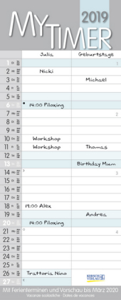 Übersichtlicher Familienplaner für bis zu 2 Personen; sehr stabile Rückwand; 19 x 47 cm