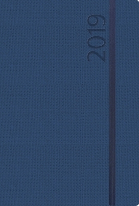 Moderner Buchkalender mit dunkelblauem Einband. Umschlag aus edlem Strukturpapier. Pro Woche 1 Doppelseite. Mit deutschem Kalendarium und Jahresplaner für 2019 und 2020. przeczytaj całość