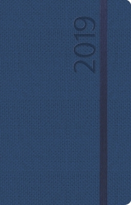 Moderner Buchkalender mit dunkelblauem Einband. Umschlag aus edlem Strukturpapier. Pro Woche 1 Doppelseite. Mit deutschem Kalendarium und Jahresplaner für 2019 und 2020. przeczytaj całość