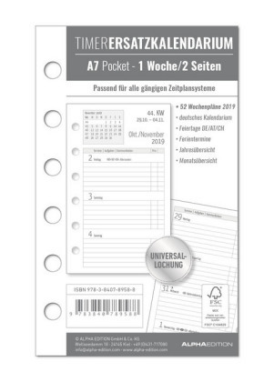 Timer Ersatzkalendarium A7 Pocket 2019 (niemiecki)