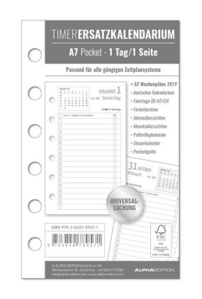 Timer Ersatzkalendarium A7 Pocket 2019 (niemiecki)