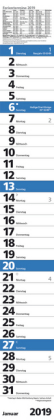 Praktischer Streifenplaner mit Datumsschieber und Ferienterminen. Sonntage blau markiert. Kalendarium in deutscher Sprache. przeczytaj całość