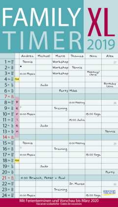Übersichtlicher Familienplaner mit 6 großen Spalten; sehr stabile Rückwand; 27 x 47 cm