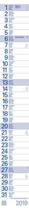 Praktischer Streifentimer mit Datumsschieber. Sonn- und Feiertage blau markiert. Kalendarium d-e-f-i. przeczytaj całość