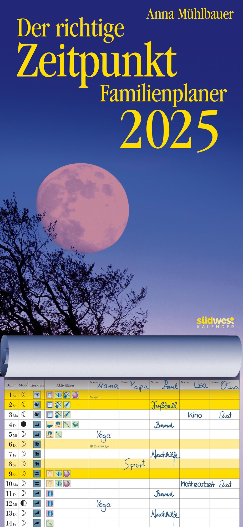 Der richtige Zeitpunkt Familienplaner 2025 - Monats-Wandkalender zum Aufhängen, mit Spiralbindung, 22,4 x 48,5 cm (niemiecki)
