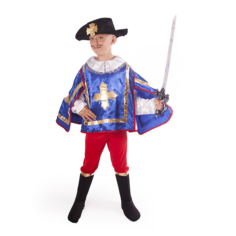 Parádní kostým ve stylu mušketýra nesmí ve tvé karnevalové sbírce chybět! Tento stylový kousek ve velikosti S je určen pro chlapečky ve věkovém rozmezí 4-6 let (110-116 cm). Vrchní díl modro-bílý má zlaté a červené lemování a kříž, spodní díl je červeno-černý s návleky na boty. Součástí je také...