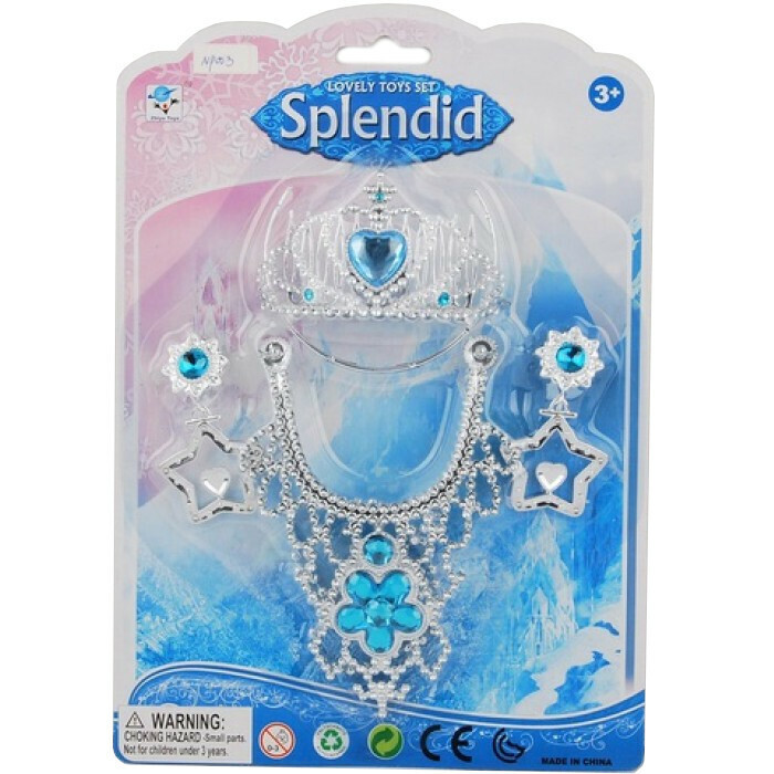 Wspaniały, zimowy zestaw piękności stworzony z myślą o najmłodszych. Pozwól swojemu dziecku stać się piękną księżniczką. Komplet składa się z diademu, kolii oraz kolczyków. Elementy zestawu odznaczają się błyszczącym srebrnym kolorem z motywem niebieskich diamentów. Jedynie przepiękna kolia...