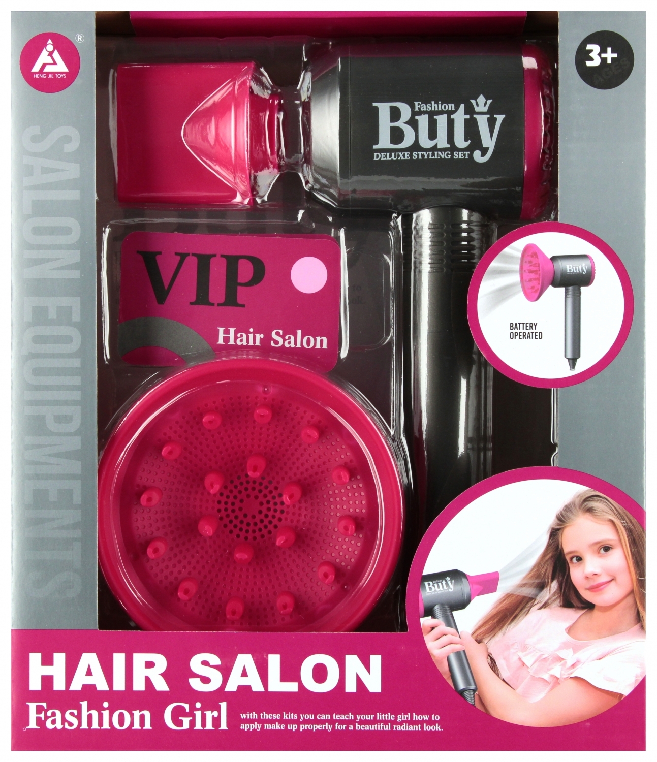 Zalety produktu: rozwija kreatywność dziecka, pozwoli dziecku wczuć się w rolę prawdziwego fryzjera. Zestaw fryzjerski do tworzenia stylizacji fryzjerskich. Zawartość zestawu: suszarka do włosów,2x końcówka do suszarki, 2x karta VIP. Zestaw wykonany z plastiku i kartonu. Suszarka wydaje dźwięk...
