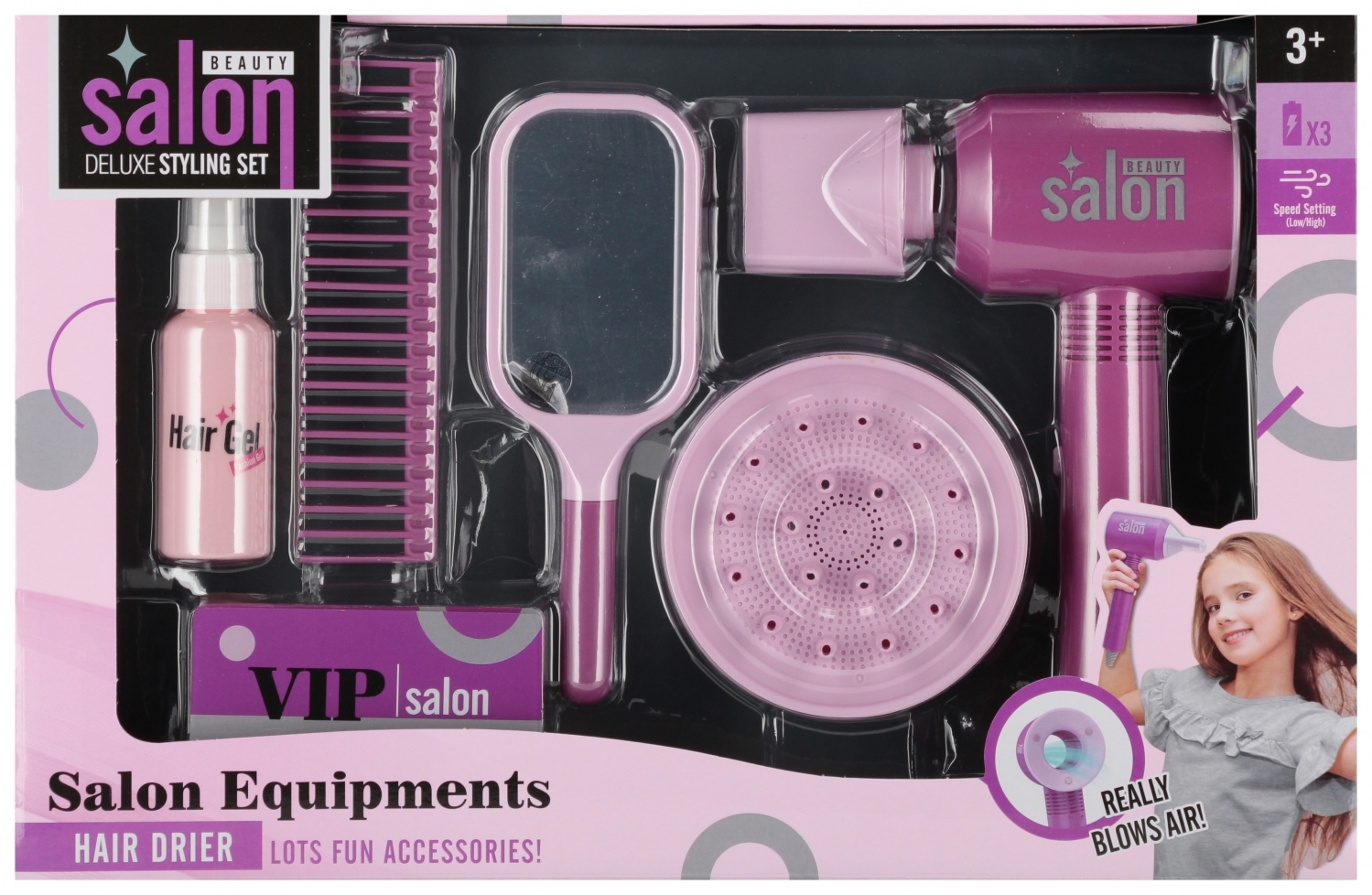 Zalety produktu: rozwija kreatywność dziecka, pozwoli dziecku wczuć się w rolę prawdziwego fryzjera. Zestaw fryzjerski do tworzenia stylizacji fryzjerskich . Zawartość zestawu: suszarka do włosów 2x nakładka, grzebień, buteleczka-spray do włosów, lusterko, 2x karta VIP. Zestaw wykonany z...