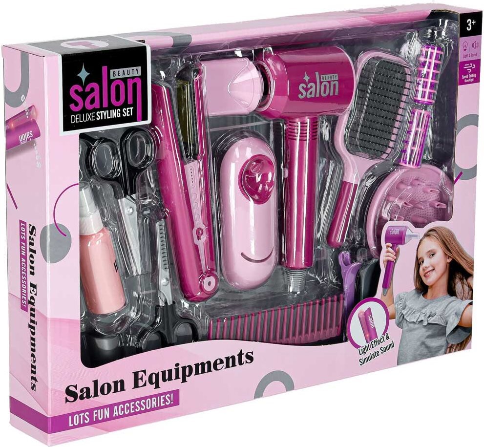 Rozjeďte doma malý salon krásy! Bohatá sada potěší všechny malé stylistky i stylisty. Rozvoj kreativity a jemné motoriky - děti si vyzkouší roli kadeřníka a rozvíjejí představivost i dovednosti. Realistická a bezpečná hra - světelné a zvukové efekty, ale žádné ostré hrany ani zahřívání....