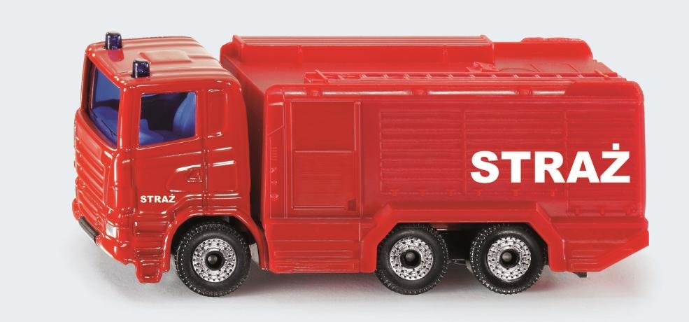 Model straży pożarnej SIKU został wykonany z wysokiej jakości materiałów. Metalowa karoseria została pokryta czerwoną farbą oraz posiada specjalne oznaczenia polskiej straży pożarnej. Dzięki 3 osiom z 6 kołami, pojazd strażacki poradzi sobie nawet w trudnym terenie, w trakcie wymagających akcji gaśniczych. Wóz strażacki jest idealną zabawką, szczególnie dla fanów pojazdów specjalnych, takich jak straż pożarna.