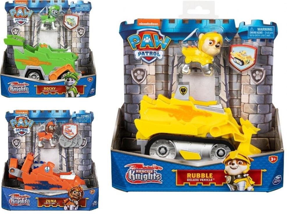 Miks wzorów, towar wysyłany losowo.Połącz siły z Chase'm i weź udział w ekscytujących misjach z jego pojazdem delux w wersji Psi Patrol Odważni Rycerze. Pojazd Chase'a posiada detale i stylizację inspirowaną smokami oraz ekscytującą transformację narzędzi ratunkowych. Ubrany w zbroję Odważnych...