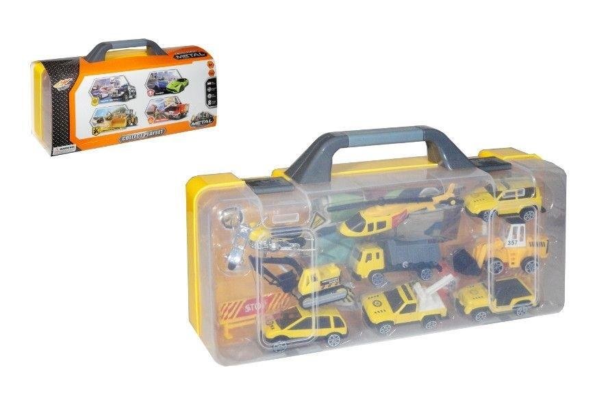 Zestaw pojazdów budowlanych razem z akcesoriami (np. znaki drogowe), który jest jednocześnie grą. W środku znajduje się mata wraz z kostką i instrukcją gry. Dzieci za pomocą tej zabawki będą mogły się bawić na 2 sposoby (pojedynczo pojazdami albo jako gra). Pojazdy w skali 1:64.Produkt zapakowany... przeczytaj całość