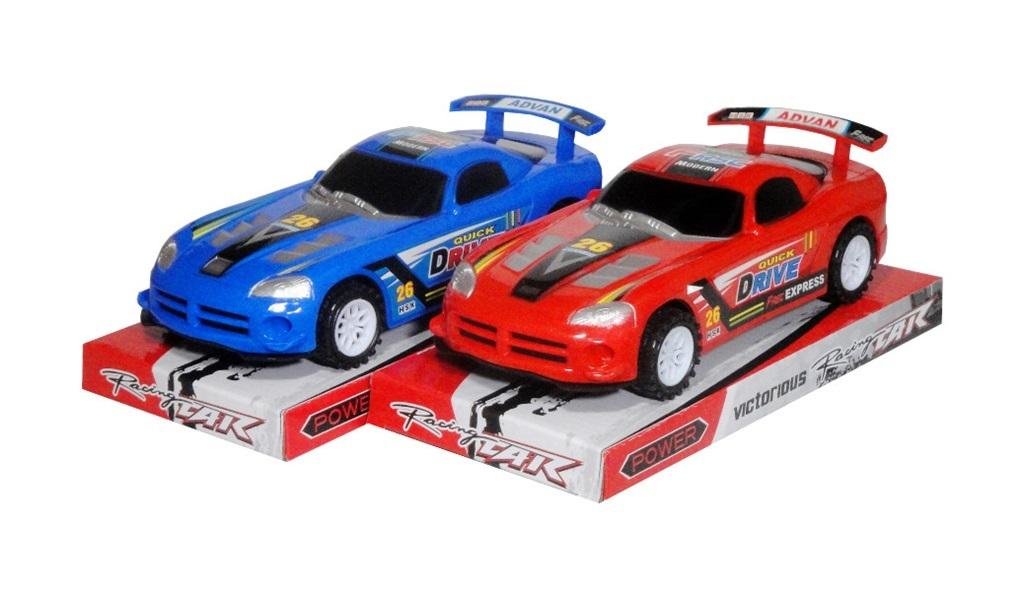 Samochód wyścigowy z napędem ciernym. Produkt zapakowany w kartonowa podstawkę z przezroczystym kloszem. Zabawak dla dzieci od 3 lat. Podane wymiary są wymiarami opakowania. Produkt występuje w kilku wersjach kolorystycznych, wybierany losowo. Cena dotyczy jednej sztuki. przeczytaj całość
