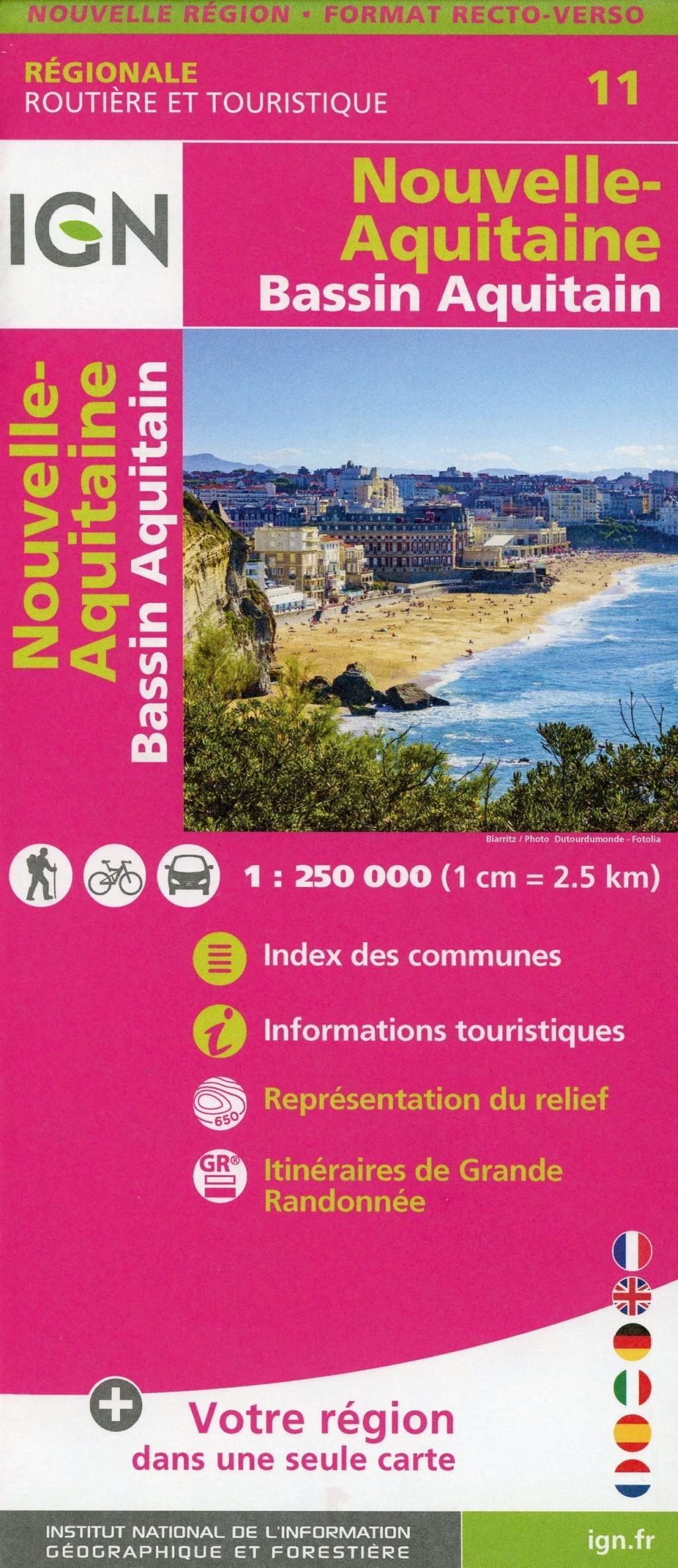IGN Karte, Régionale Routière et Touristique Nouvelle Aquitaine (Bassin Aquitain) Recto/verso (francuski)