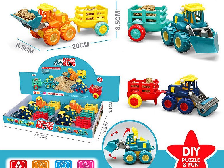 Stavební vozidlo s přívěsem 20x8,5x8,5cm,displej 6ks; 48,5 x 29 x 8,5 cm