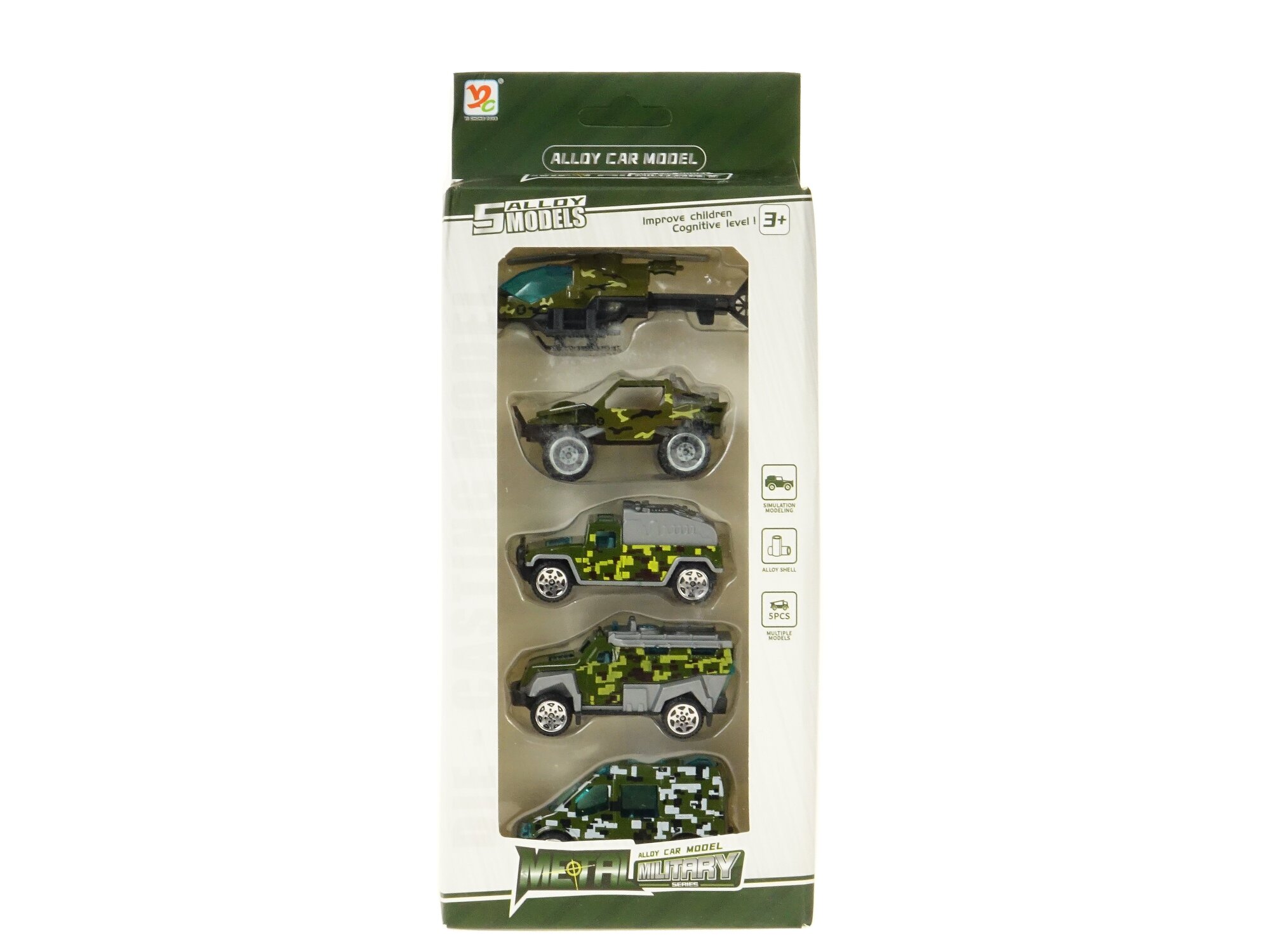 Sada 5 vojenských vozidel, kovová; 27,5x11x4cm, W/B