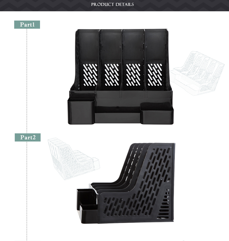 Plastowy stojak na katalogi, 4 moduły Comix B2034 Plastowy stojak na katalogi, składający się z 4 modułów. Wymiary 326 × 305 × 265 mm.