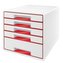 Zásuvkový box "Wow Cube", bílá/červená, 5 zásuvek, LEITZ 52142026