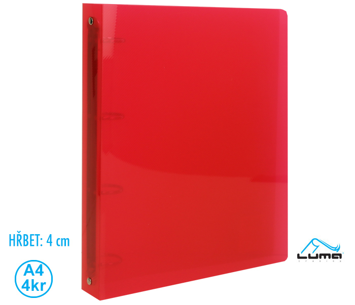 Pořadač LUMA A4/40mm 4 kroužkový červený